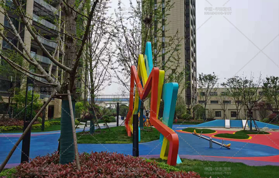 • 祥生云山新语项目采用的是以星星形状的门型为原型而设计的游乐场地,该场地放置了跷跷板、微地形,攀爬墙等游乐设备。