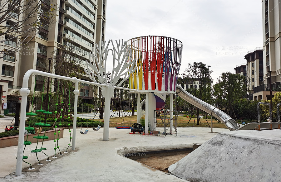青阳二期采用是是必一运动游乐非标定制的游乐设备,设计了大型的网红滑梯、小朋友喜欢的葫芦攀爬、攀爬绳和秋千组合,为生活在该小区的人们提供了一个休闲娱乐的场所,也为小朋友的健康成长提供了一个游乐场。