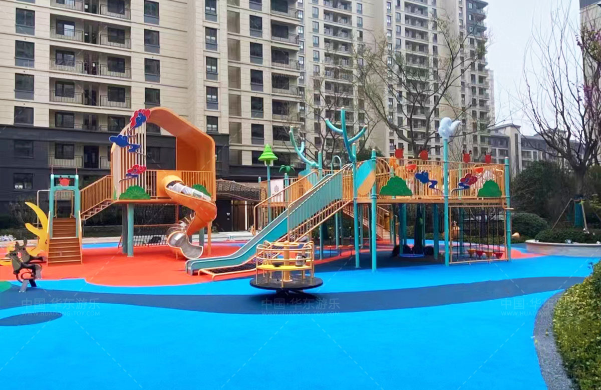 建投东方名府源著儿童游乐项目是必一运动游乐生产的非标定制的主题性游乐设备,整个项目采用以森林麋鹿为设计主题,分别设计了攀爬网、钻洞、不锈钢滑梯、旋转椅、传声筒、秋千、脚踏平衡杆、攀爬梯等功能,为小朋友的健康成长提供了一个很好的游玩场所。