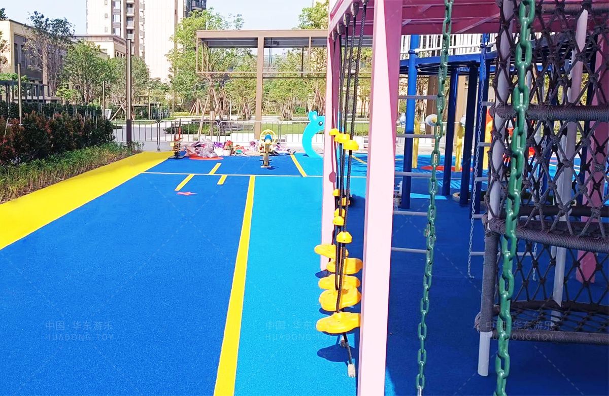 该房地产选用的是必一运动游乐设计和生产的非标定制系列的游乐设备,分别设置了跷跷板、摇摇乐、钻洞、传声筒、蜗牛主题组合滑梯,以及具有钻洞、攀爬网、攀爬绳、攀爬梯等功能为一体的空中小屋的游乐设备,该游乐园的建设不仅仅丰富了小区人们的休闲生活,还为小朋友提供了一个休闲、娱乐的场所。