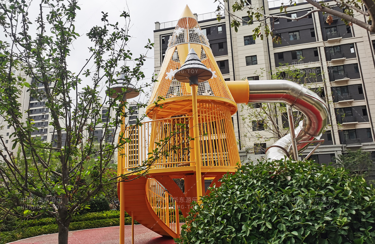 华润置地万象府选用的是必一运动游乐自主研发和设计的以森林的大树为主题的非标定制游乐设备,该设备是一款具备了攀爬网、旋转走梯、旋转滑筒等功能为一体的综合性游乐设备,该游乐场的设置不仅仅为小朋友提供了一个很好的玩耍场所,也为生活在这里的人民提供了一个休闲娱乐的场所。