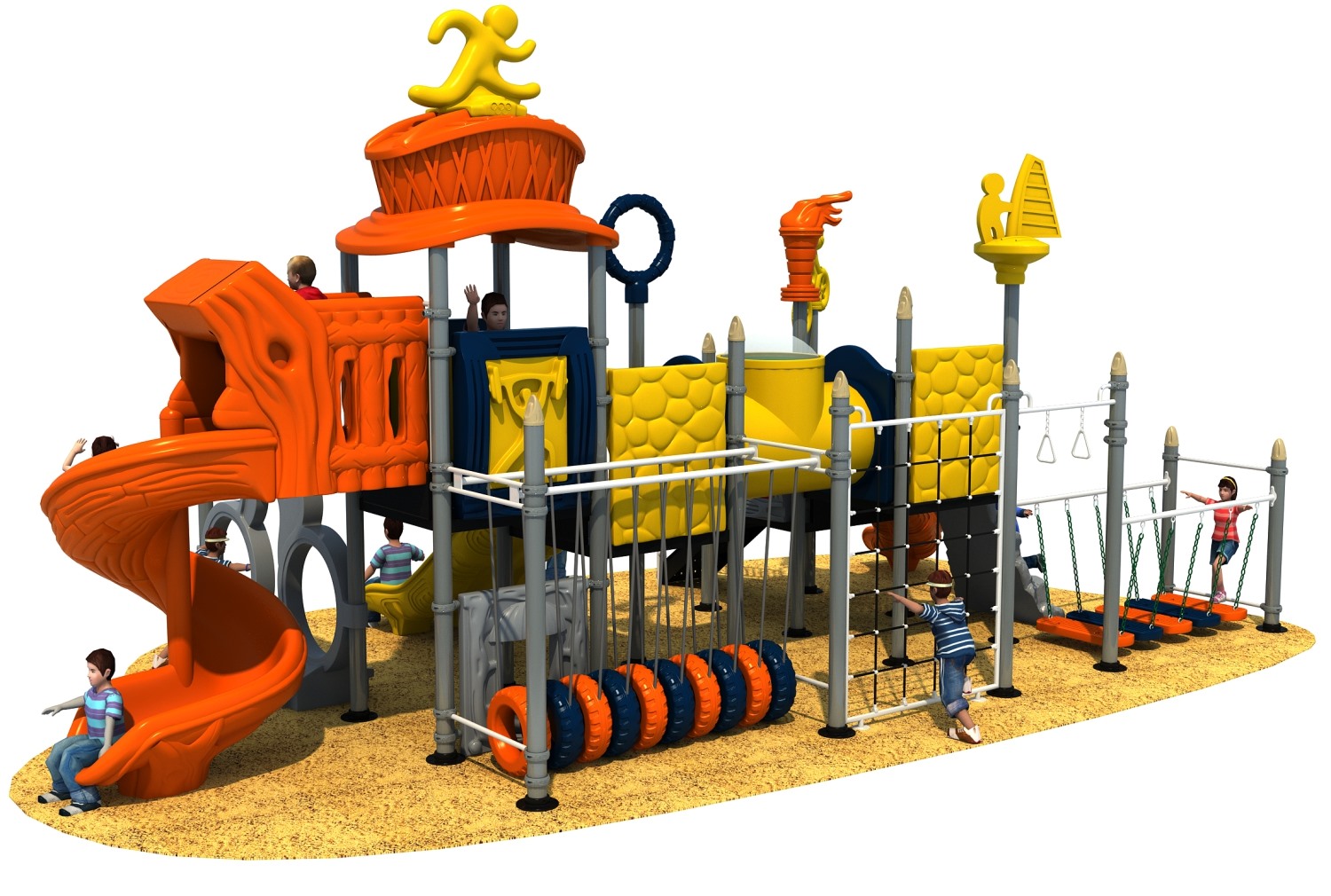 赛事系列游乐设备是必一运动游乐根据常见的足球、垒篮球体育等赛事而自主研发和设计的组合滑梯,它是一款能够引导孩子们在玩耍时小朋友之间应该互相帮助、相互鼓励的无动力游乐器械,也是一个具备教导孩子们学会通过自己的努力取得最终胜利而敢于拼搏和挑战的游乐设备,卡通的造型、生动的形象让小朋友在玩耍的过程中有一个愉快的童年。