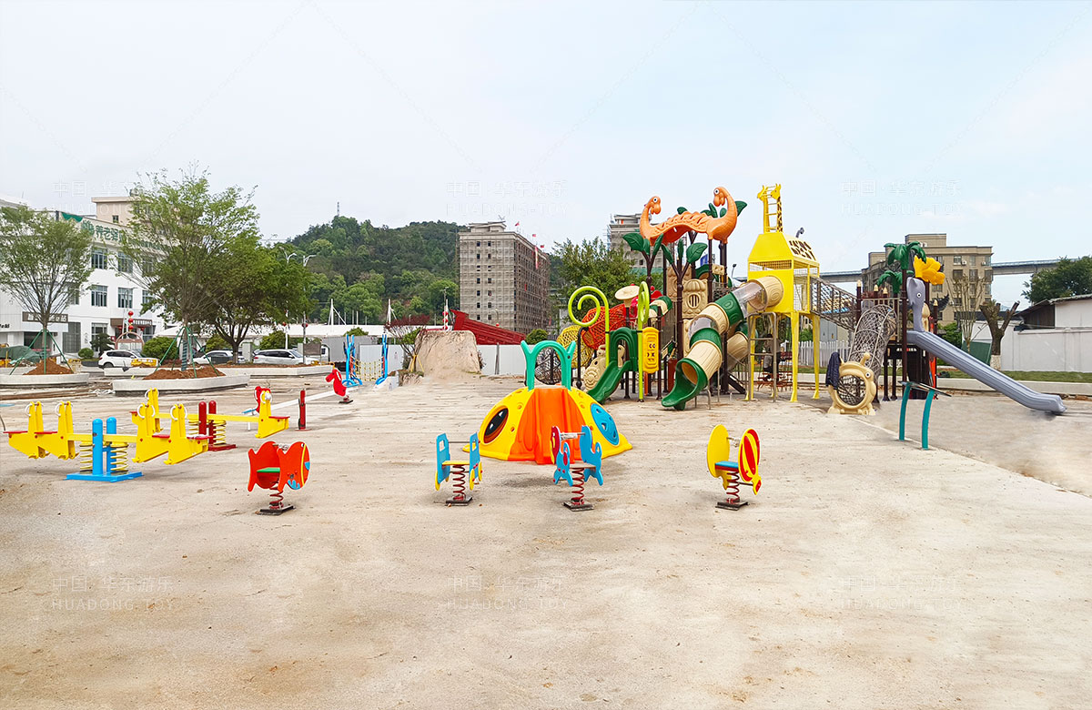 乐清市溪西工业园区休闲文化生态园是一个免费的文旅公园,主要为生活在这里的人群提供一个休闲、娱乐、遛娃、健身的场所,在该项目中选用的的必一运动有了自主研发和生产的动物系列组合滑梯,该滑梯具有功能齐全、玩法多样、颜色艳丽等特点,除此之外还新增了儿童 摇摇乐、组合秋千、跷跷板、打击乐器、脚踏旋转座椅等游乐设备。