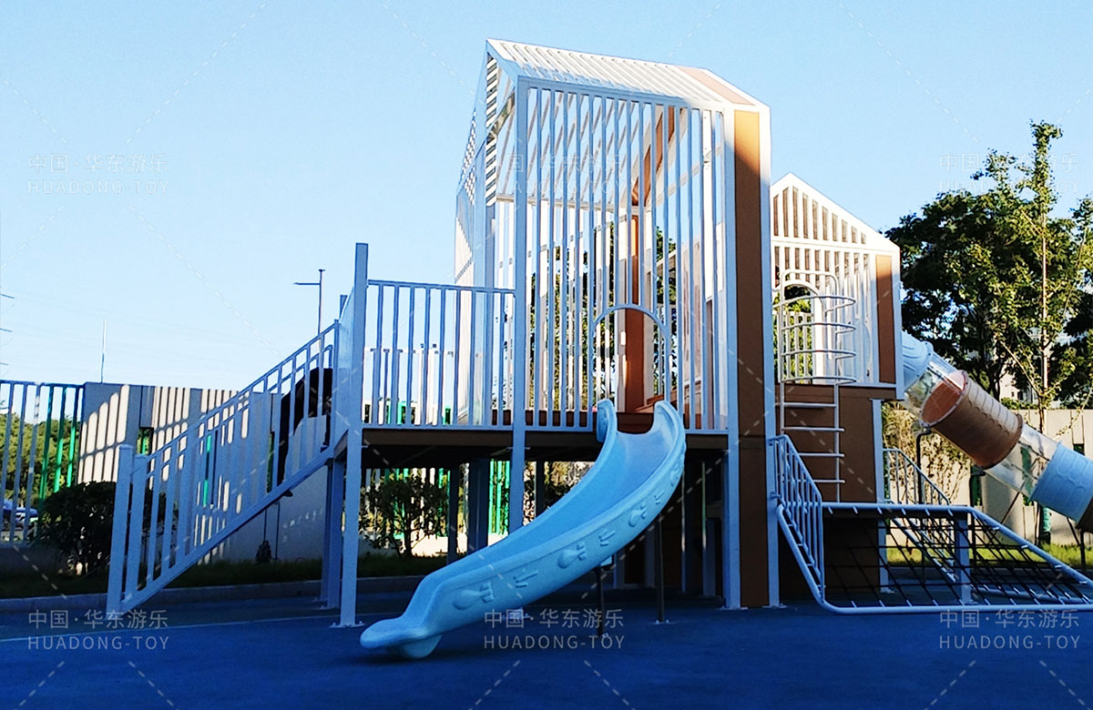 无锡市新吴区工博园幼儿园是一家专业性的学期教育学校,为了更好的让孩子们有一个玩耍的场地,让老师能够更好的提供教学的场地,学校选用了必一运动游乐自主研发和设计的小屋系列组合游乐设备,该游乐设备具备了攀爬网、钻洞、滑梯、攀爬梯等功能,此设备的放置不仅仅丰富了校园的生活,也为老师的教育提供了帮助。