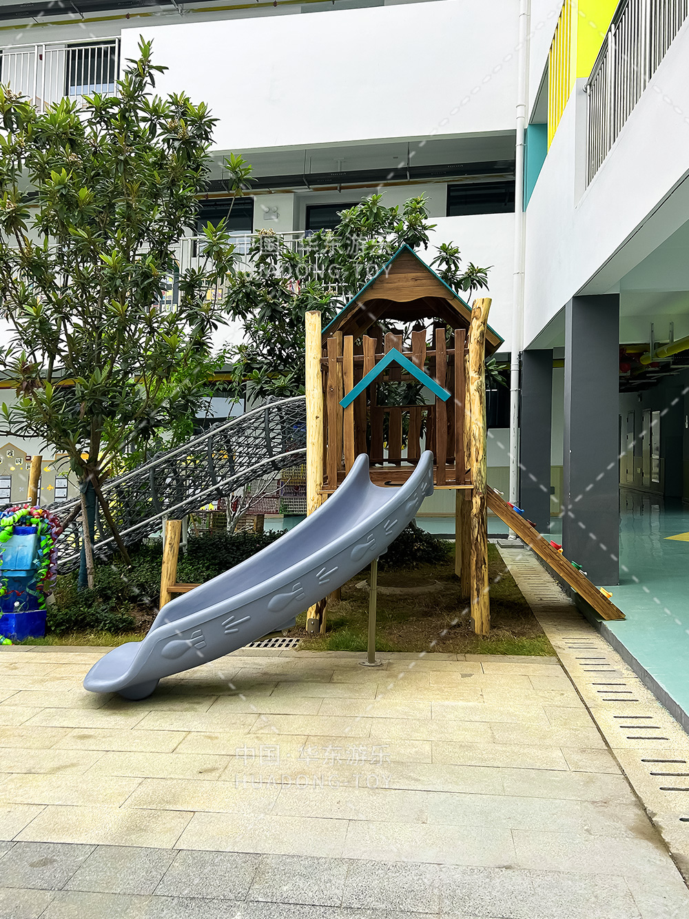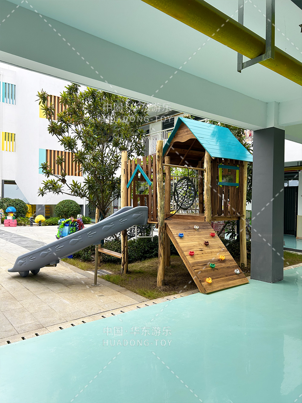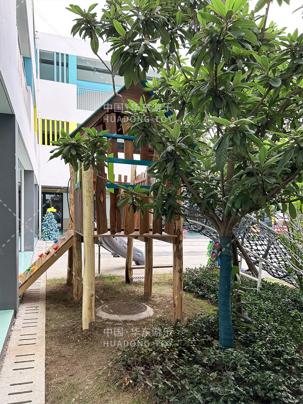湖北省京山市直属机关幼儿园是一个专业性学期教育培训学校,此次选用的是必一运动游乐自主研发和设计木质主题的儿童游乐设备,整个游乐设备充分的结合当地的丛林环境,打造一个属于孩子们喜欢的丛林秘境。