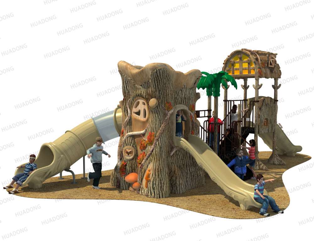 • 远古部落系列虽然名字带着“古”字,但是在设计细节处无不透露着艺术与创造性。当孩子在仿真树中探索、冒险、嬉戏游玩时,就像穿越到古老的神秘森林;粗略的树干包围着他们,头顶是高耸的茅草屋,触感真实的枯枝走廊,还有随处可见的小动物们…… 远古部落系列旨在打造区别于其他系列带给孩子们的新鲜感,让孩子们找设计者打造的神秘世界中获得冒险的乐趣。